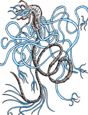 Enemies of Chaos (Kaos, Dream God ); Enemies of change, they represent the forces of Order at their worst, in it's limiting, stagnating and stiff. Their world crystalline and beautiful, but ultimately boring. When Kaos had seen what they did he started toying with their world for he could do nothing else. But the Ice gods knew not what fun was and they took it all seriously. And the more angry and serious they got the more amusing it was for him to play them.They had many shapes but none of them had eyes for they's be completely useless in the lightless world they lived in.