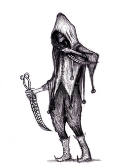 #blade #dagger #grin #jester #mask #fire
