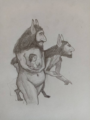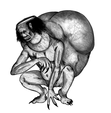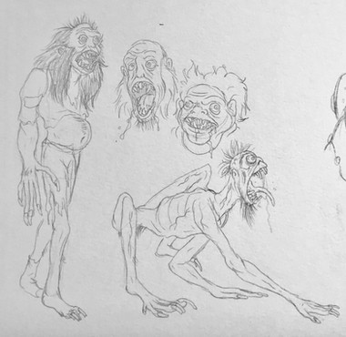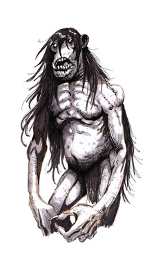 A family of xenophobic degenerates, slowly isolating themselves from the outside world more and more... ultimtely reduced to this, after generations of incest."When they had thinned out enough to be glimpsed as separate organisms, I saw that they were dwarfed, deformed hairy devils or apes-monstrous and diabolic caricatures of the monkey tribe."