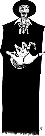 "His hat was on the table, and he had a bald head. I waited a second or two looking at him rather particularly. I tell you, he had a very nasty bald head. It looked to me dry, and it looked dusty, and the streaks of hair across it were much less like hair than cobwebs. Well, I made a bit of a noise on purpose, coughed and moved my feet. He turned round and let me see his faceβwhich I hadn't seen before. I tell you again, I'm not mistaken. Though, for one reason or another I didn't take in the lower part of his face, I did see the upper part; and it was perfectly dry, and the eyes were very deep-sunk; and over them, from the eyebrows to the cheek-bone, there were cobwebsβthick. Now that closed me up, as they say, and I can't tell you anything more."M. R. James, The Tractate Middoth