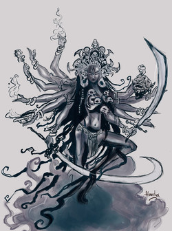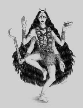 It is interesting how she is also Durga (the goddess of war), and Parvati (the goddess of love), and what a common concept it is across cultures to have the deity of love and war be one and the same, like Sekhmet and Hathor being two sides of the same goddess in Egyptian religion, and Ishtar having a procreative and destructive aspect in Mesopotamian religion. Guess it symbolizes how creation and destruction are interconnected.