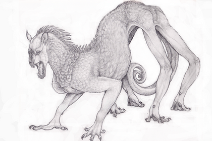 A man eating monster from India. (well.. at least according to ancient Greeks.) The creature was said to have lion-like body with man like face and scorpion tail, which could fire arrow like projectiles. Compared to my previous work it's very similar but much better executed especially in the middle part. Otherwise main difference would be it's face. I went even further inot something disfigured and primitive than before. It's a bit similar to my Brown Jenkin though..Related content