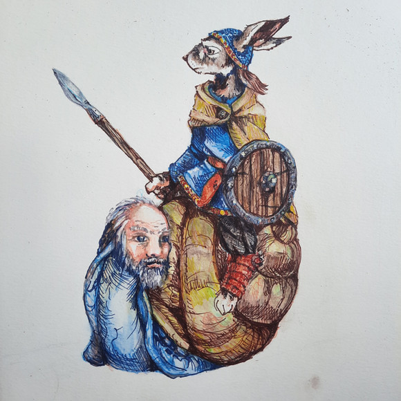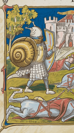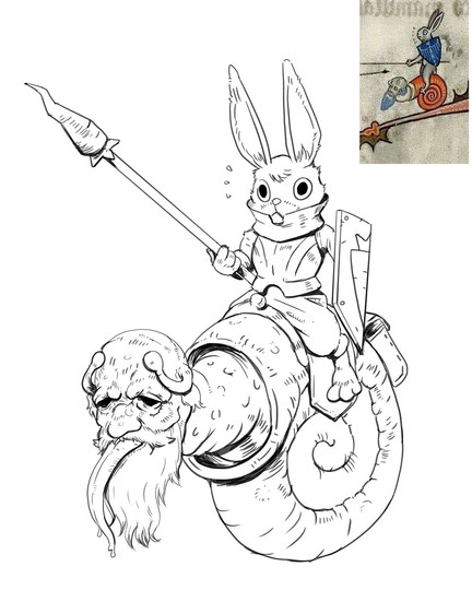 #coloredpencils #creature #drawing #funny #jousting #knight #marginalia #rabbit #rysunek #snail #warrior