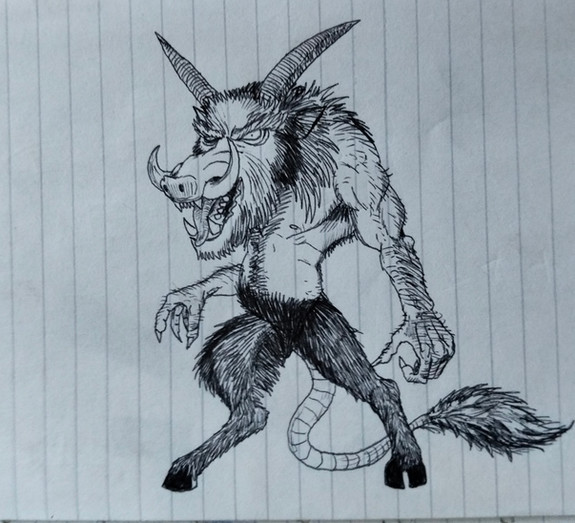 The Minotaur was the result of a oerverted mating between the Queen and the bull that was supposed to be sacrificed to Poseidon. Its behavior, worse than even a bull's, it was up to Thesues to destroy the Chaos-creature.