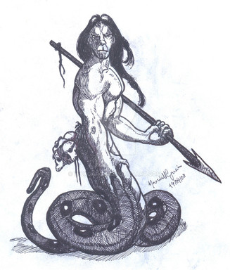 Snake hybrids are quite popular I guess. Probably best known as Naga from India but not confined to there.Perhaps this could be a Spawn of Yig, although in some more perfect form than the crawling mutant from "Curse of Yig" Speaking of Lovecraft - many of you will be happy to know that the most "lovecraftish" time of the year for me has just begun. Expect the themed artworks to rise again!