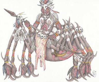 Probably the best depiction of a Rakshasa I've seen, due to the inherent creepiness of it. It reminds me of a spider.
