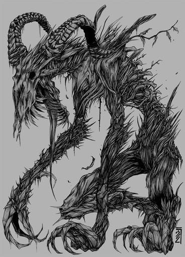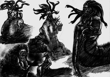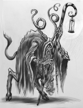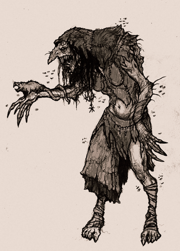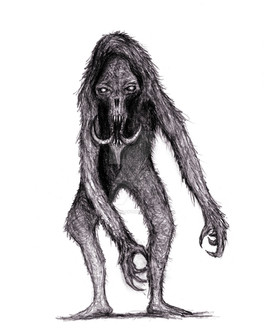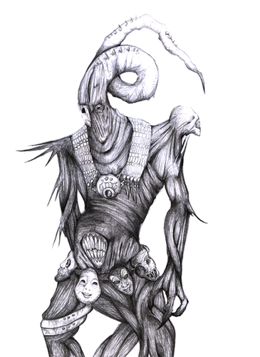 I love the original native costumes, but your design is something else! It clearly represents the costumes, with the freakishly long fingers and tongue and tusks, but in a nightmarish-realistic way so unique to yourself. This is a monster I can imagine spreading disease and eating babies, a monster I can imagine manifesting in the shadows, and a monster I sure as hell wouldn't want to meet.