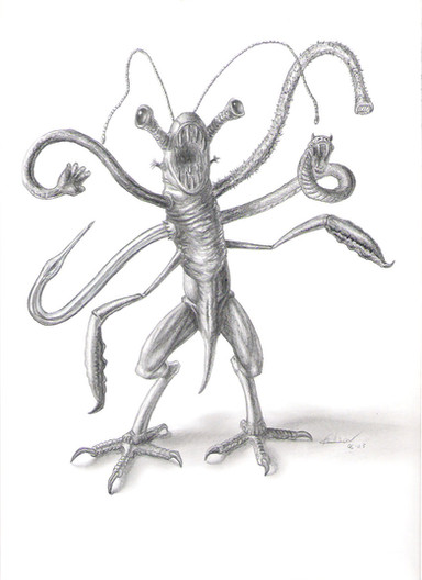 Really cool design! Going with a bipedal form definitely ups its creep factor. Love it!