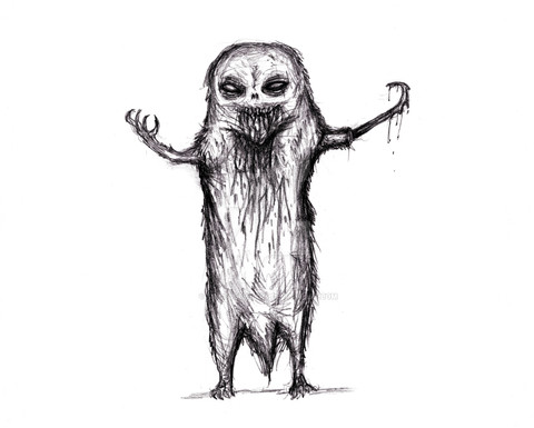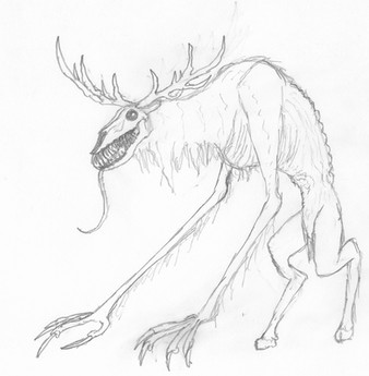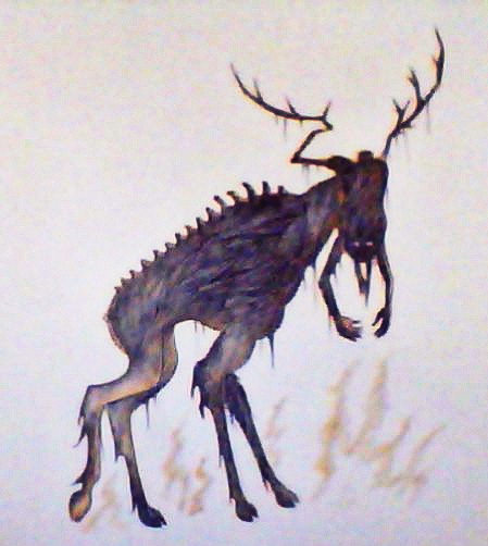 Nice picture, though I have a question: how come most depictions of this monster depict it as like an upright walking carnivorous deer, while in actual folklore is more like a zombie creature, or a ogre like giant?