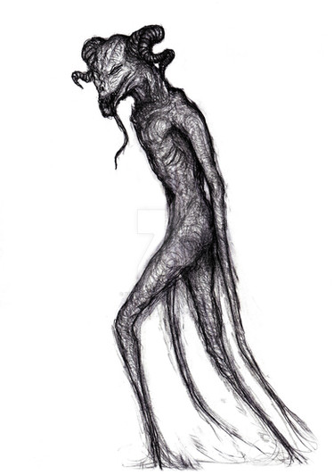 Very malnourished and stick figure like in nature. This is one of the better Wendigo artworks out there that stay true to the legend