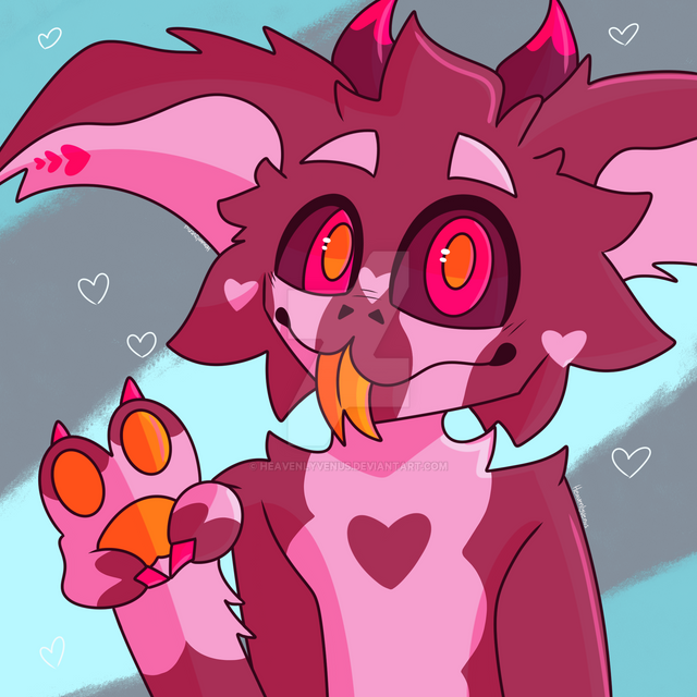 #anthro #artwork #character #creature #demon #design #digital #dragon #feral #furry #headshot #hybrid #icon #oc #original #pink #red #shaded #shading #simple #stylized #warmcolors #wings #yellow #art
