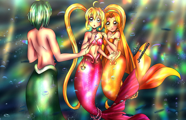 Embarrassed Lucky is embarrassed Lucky <3 such a gentlemen. I always wondered where they got those lights under-water o-o Maybe it's a mystic mermaid thing. Or some sciency stuff that water-technology can bring about. Then again, those two sound like the same thing. >->"