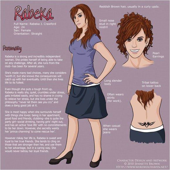 And after 3 years i finally got around to updating this. Reused an old pose since i don't have the time to draw a new picture of her. Some info like alternative outfits and hair were left out for the time being since she only has the one look for now. Will probably nuke that section all together and add character sketches of her in the future