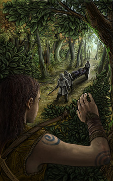 The second colored illustration for my book illustration assignment *v* Kwiri, the wounded boy here, decided he won't listen to Teeku the shaman and would go hunting even though he felt really bad, then at one point lost his balance and fell off a cliff right onto a dead tree/stick/something and almost died there because he has pretty bad luck. But then Teeku found him c:I haven't draw real leaf madness for...over...3 years? I feel like I do that all the time but it looks like I've been pretty lazy with including 10000000 handpainted leaves in my colored things. I did use some leaf brushes for the base but still spent at least 4 more hours leafing. Happy times! Also coloring took me only 3 days so double happy times, I'm finally getting better at time managment *dances*