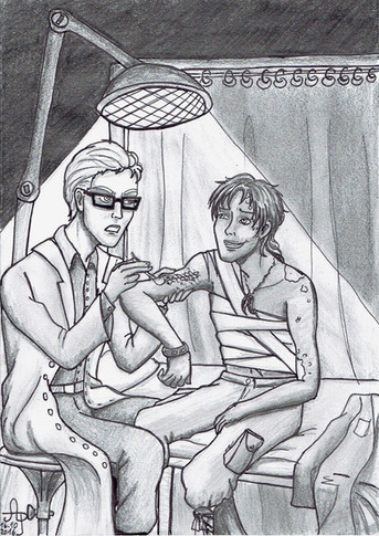 This time with a small writing snippet! Semi related to the picture, because I got distracted thinking about blood pressure tests during drawing. I generally have a blood pressure of a corpse and arms not very big, so half the time the meter doesn't even detect anything :l Fun times. Anyway pls enjoy my wonky grammar.