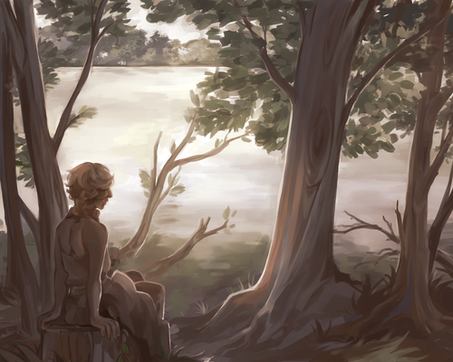 this is sooo beautiful <33 the textures are so stunning! i love the added lily pads along the water edge and the bark on those trees are simply perfect!