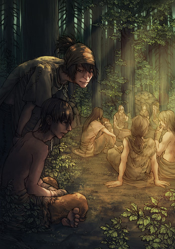 For ! I love her characters and her stories so sometimes I start doodling them into my sketchbook, sometimes they stay there and sooometimes they even get colored because who would color own stuff when you can do stuff for others instead x)Cure (the tree guy)(treeeee peopleeee) and Red (surprisingly the red haired guy) belong to shirotsuki . If you don't know her serously go check her gallery RIGHT NOW, my art is nothing compared to hers ;v;
