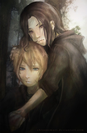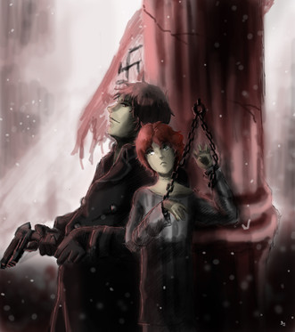 "I'm just trying to help you."This was just a small sketch of young Nathanel obviously having problems with eyes (having them sewn isn't very healthy) and Siva trying to do something about it, I had to get that out of my head and then really wanted to color it even though I should be working on other things. But working on this was important too, I've been pretty down about not having time (while it's not that bad) and rushing everything lately, so it was really nice to finally get myself to slow down and do things properly.