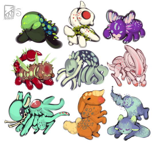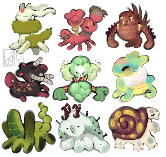 For fun I made up three Slimes (the ones that are named on the art)