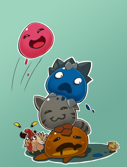 I didn't include ALL the slimes in this picture anyways (even though I dont see the tarr as slimes, more like danger elements in the game XD since you cant really do anything with them yet other then use them as trash cans to clear slimes )