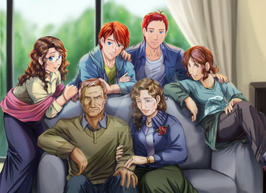 Reminiscent of the older styles of Anime and manga with the artists own unique charm masterfully infused with a soulful illustration. A perfect scene of a young couple enjoying their youth in a formal setting with a relative. For some reason I see something a little unsettling under this wonderful seface, but that is the ecence of life. Speculation as well as trust. Good show.