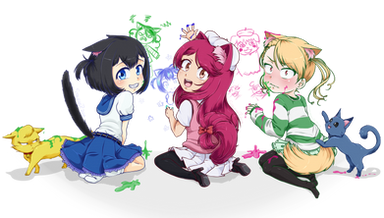 Suddenly Kawaii can not be contained in the inner-space of a girl's mind, and it manifests itself as a torrential beam of spectrum color kitties.