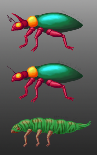Random creature based on a real insect (don't know its name though sorry!).I'll try to submit more often here! And more "casual" art. Because I want to share my work but not take too much time posting it here.
