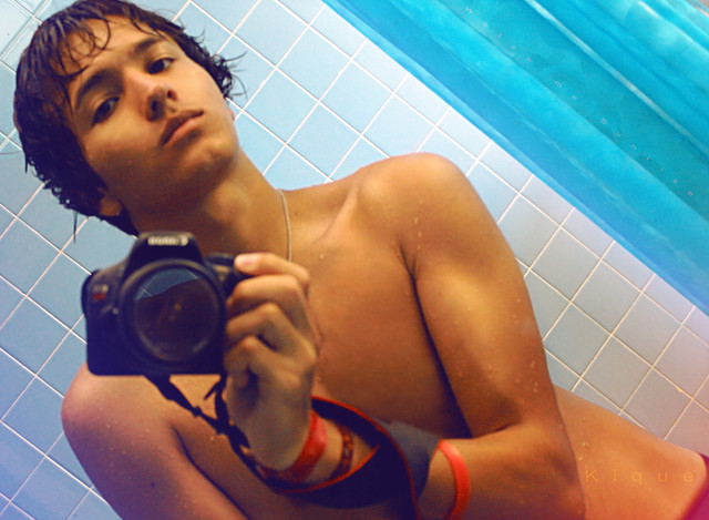 Kique, you get more handsome every day. The beauty of this shot is that you aren't doing anything. Perhaps you can take the same shot without the shirt and take another in a year, after swimming most every day. These are photos you should keep forever and will be your reward for swimming. Like they say, "Swimming: From the outside looking in, you can’t understand it. From the inside looking out, you can’t explain it."