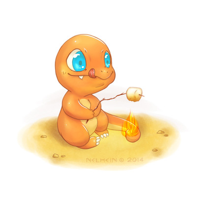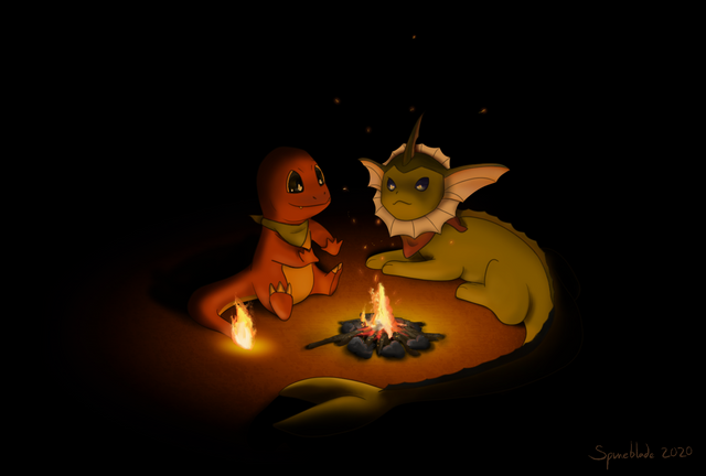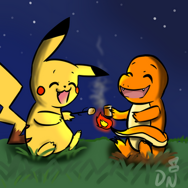#camping #pokemon #kirasdarklight #calcifer #charmander #digitaldrawing #digitalillustration #howlsmovingcastle #pokemonfanart #smores