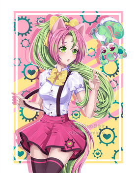 Aaa~ she's so cute! I love her big bows and those... heart-star things XDD
