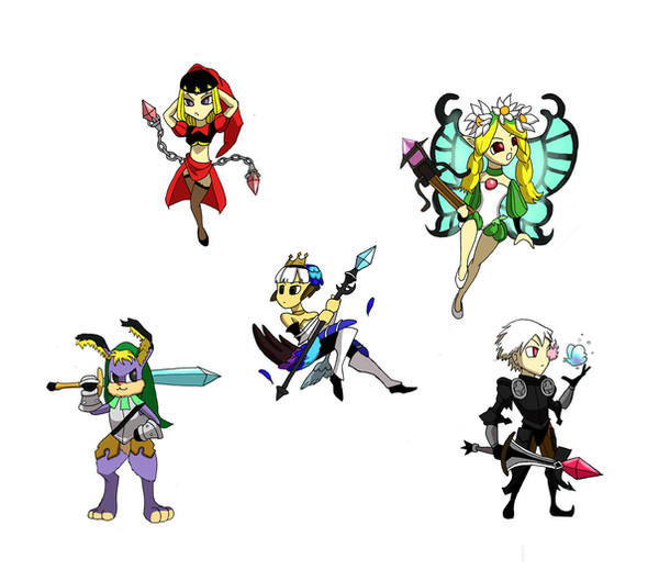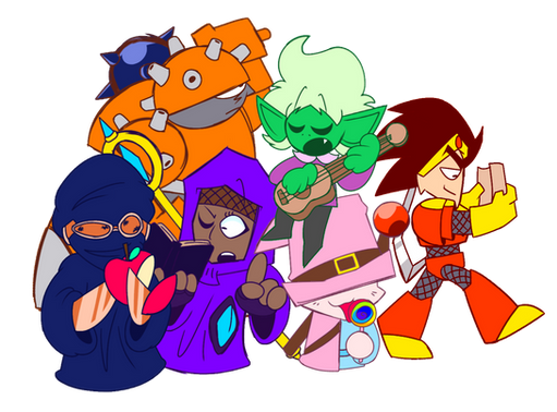 Got a little inspired by 's work on the Scott Pilgrim game and tried my hand at some sprite-esque drawings of the TOME good guys. Not pixelated of course, but I think they came out alright for a first run.From left to right: Flamegirl, Alpha, Kirbopher, Gamecrazed, Nylocke.
