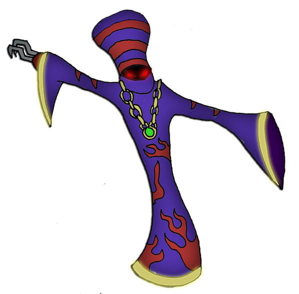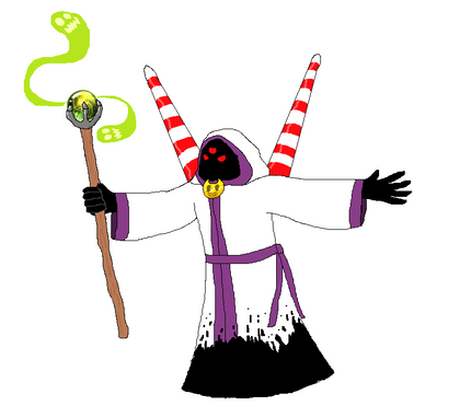 Based on my old friend: Elliot the Angel of Death. He simply asked one day at tvtome "can I be a villain with a big role?" a LOOONG time ago...I have no idea why, but I just felt like I should. Looking at it now, people would deem that totally unfiar. Oh well. And YES I'm fully aware that he looks like a KKK member, and I'm not racist, but it seemed like an aright design for a bad guy >> He's acually British though, and the cape was originally supposed to represent him as a ghost, but w/e. Some of his character was design was also inspired by a personal favorite NetNAVI, Magicman.EXERelated content
