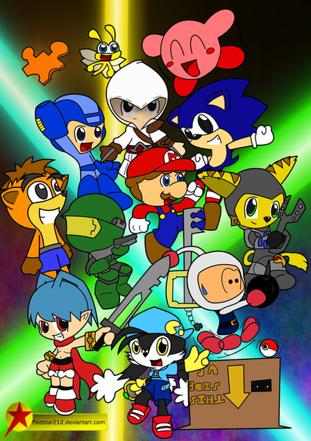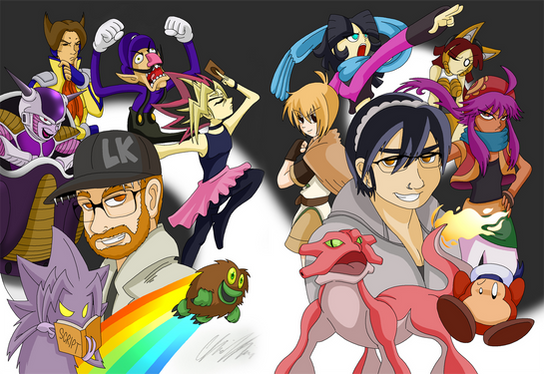 Happy Me-Day! I've now reached the big 'ol Two-Zero.I started on and finished this poster long before the big TTA picture ever even came to mind. I've been planning this for quite a while, as kind of a joking "Kirbopher 20th Anniversary", since this picture's loosely based on the Megaman 20th Anniversary poster from a while back. I tried to make a good mix of characters, mainly ones that you guys would be familiar with, so I chose a good few from each of the casts of characters derived from the likes of TvTome Adventures, Go! Go! Parody Rangers and GameSavers as well as some of my lesser-known concepts like Blu-N-Grin and Savage Cabbage, plus a few other little random characters I threw in there. This isn't NEARLY the amount of characters I've made combined throughout my entire lifetime, but hopefully this is a good amount and I'm glad with how the final thing came out. Happy New Year's Eve and here's to Oh-Nine.