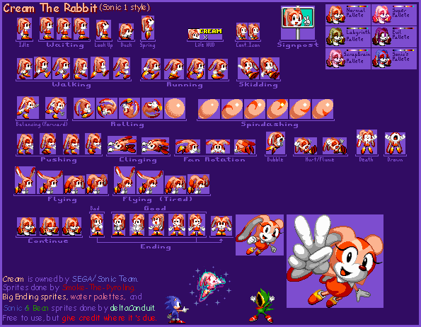 This is an edit of Vanilla's sprites from Sonic Advance 2. This was made as an attempt to make Vanilla's face/eyes look less like Cream's.The sprites are free to use, but please give credit to:
