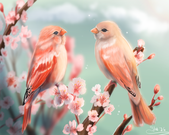 Such a lovely couple A perfect drawing for spring ^^
