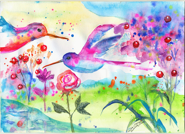 painted (as always) ^^ with watercolor andΒ colored pencils.