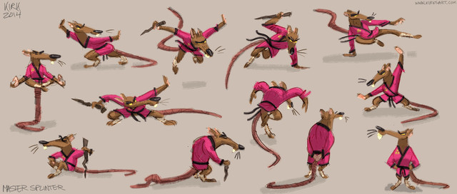 I wanted to create the old master Splinter in a more dynamic pose. Most of the stuff i've seen, got him in a boring meditation pose, or just standing there with his cane. This dude might be old, but he can still open a can.What you all think?