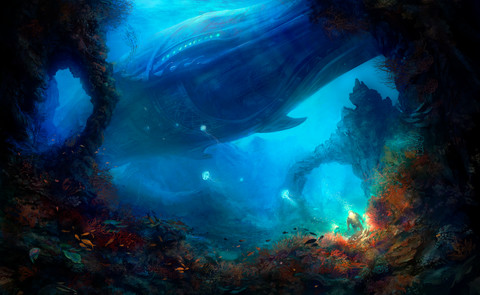 #atlantis #blue #ray #ruins #sea #digitalart #discovery #fantasy #fishes #legendary #photomanipulation #statue #submarine #travel #undersea #wallpaper