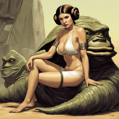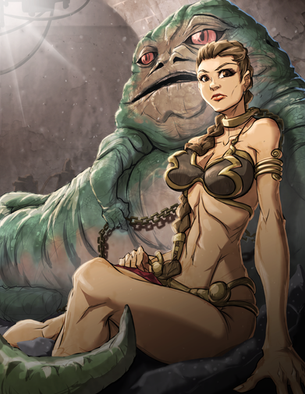 I love the smile on Jabba's face lol!!! >_< Princess Leia is such an iconic character, can't wait for episode 7 to be shown \(^O^)/!!!