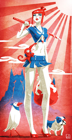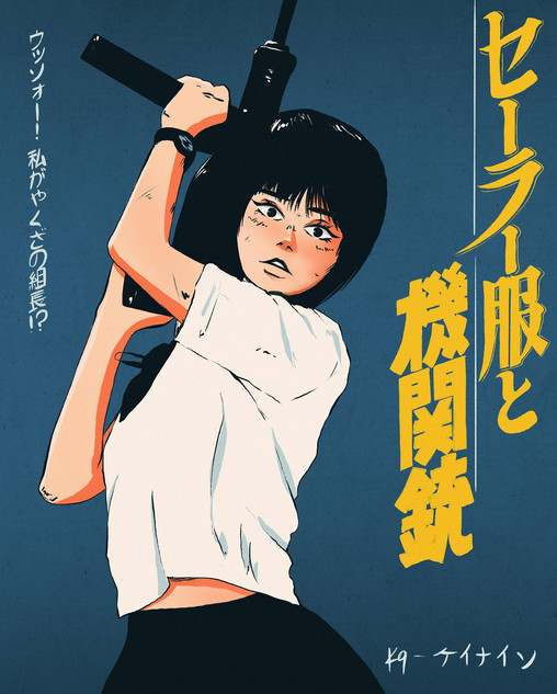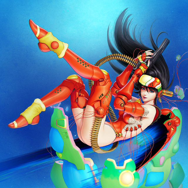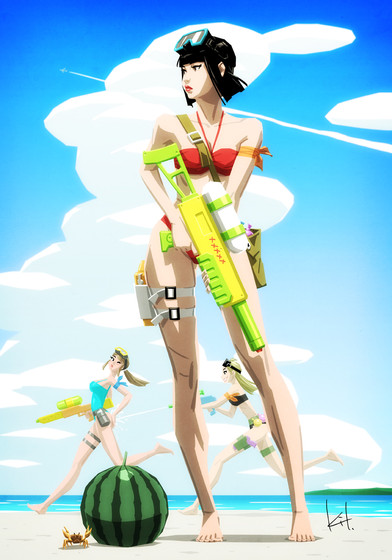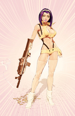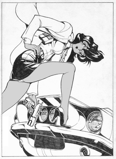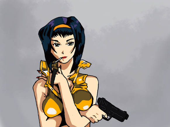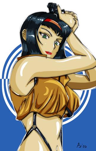 damn! that is a very unique and beautiful picture. so this is fujiko mine? excellent! i love the way her dress looks and her short hair looks a bit like 80's singer pat benatar. at least she looks like it to me. her abs look toned and sexy and the bullets and the big gun looks rockin'. this is almost like a gunsmith cats type manga cover and i love chicks with guns and fujiko is as beautiful and deadly as can be. i really love it. i wonder how lupinΒ would react if she looks like that! heh heh. excellent picture.