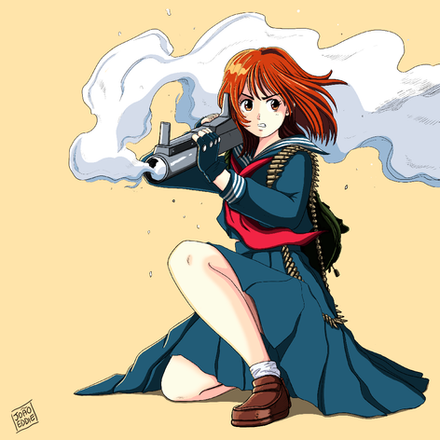 Awesome work here... is that an anti tank rifle sheβs holding?