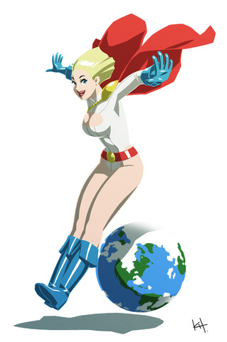 Ha ha ha - always nice to see this rarely-seen side of Power Girl. Love her playfulness, this is a great shot of her in a fun setting and backdrop!