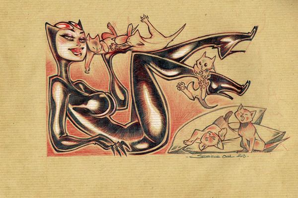 That's one adorable Catwoman pin-up! Those little kitties are a nice touch.