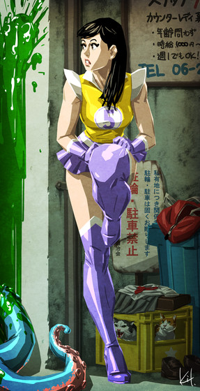 A very lovely lady off to pilot her giant robo-suit against an alien threat!ย Hate to see such a beautiful face marred by the actions of war.