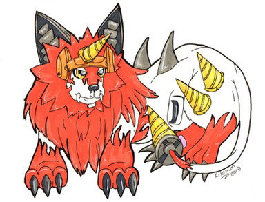 It's been a while I havn't done digital art like that except for the embroidery. I'm slowly remaking my pins and stickers and I decided to do Kitamon as a warm up from a traditional drawing that I did a little while back.Hackmon is from Digimon.