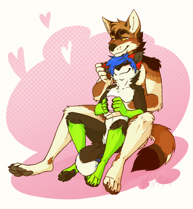 Today is mine and FizzyFangs 3rd year anniversary so I decided to draw something in celebration of it, even if he deserves so much more than a furry doodle. x ( Also wanna state that my sona is NOT a child, shes a fennec and is just a lot smaller than he is because,, hes a yeen- )