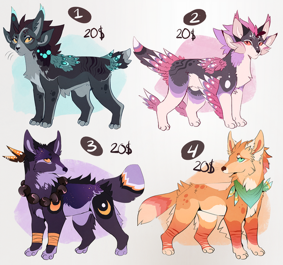 I tried to sell #3 previously... something serious irl happened and it was so stressful and frustrating that I just deleted the submission and disappeared for a while. I'm sorry ;_; Real life sucks sometimes. But everything is looking up now! Anyway if #3 looks familiar it is because I have posted her before.The others some older adoptables I never ended up finishing and posting until now.