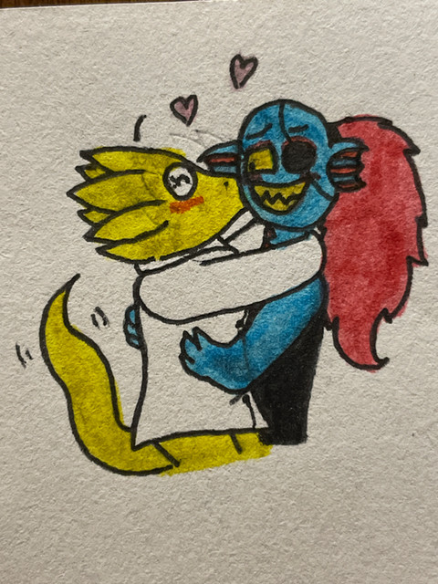 #undyne #alphyne #alphys #undertale_au #hieratale #hiera_alphys #hiera_undyne #hiera_mettaton #he_is_their_biggest_fan