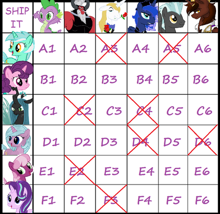 another oneeeeee. sooo im running out of ideas for ships on her and adopts any ideas would be really really aprecciated, anyway a full body pic is 60 points a bust is 40 points and a ref is 100 points. pick the ship and the gender and it shall be done! you dont need to pay till after i post the pony(ies)! and mlp does not belong to me the grid base is here: emoandmusiclover.deviantart.co…results so far: