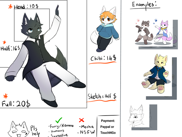 So I decided to officially open commisions!And that it's a spooky month after all, on the occasion of halloween, there is a 50% discount on the monster furson version (your fursona drew as a monster whichever you choose)